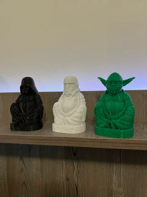 Combo Budas de Star Wars realizados en impresion 3d con materiales biodegradables de la mejor calidad premium! Buda de Darth Vader, Yoda y Stormtrooper